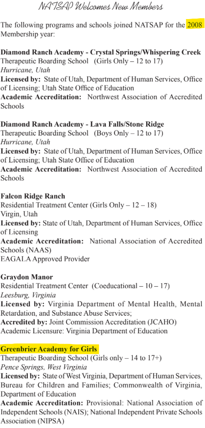 National Association of Therapeutic Schools and Programs. (2009). NATSAP News, Undated Issue.